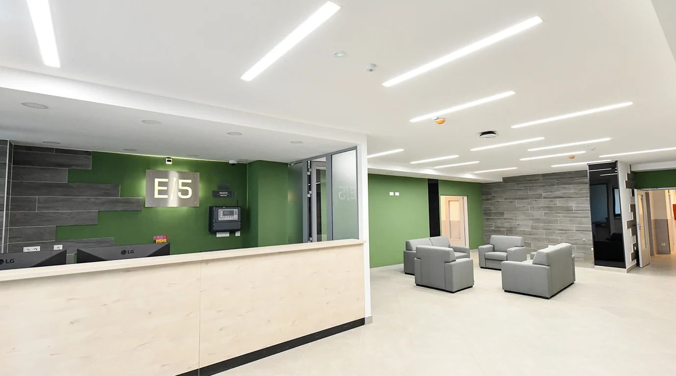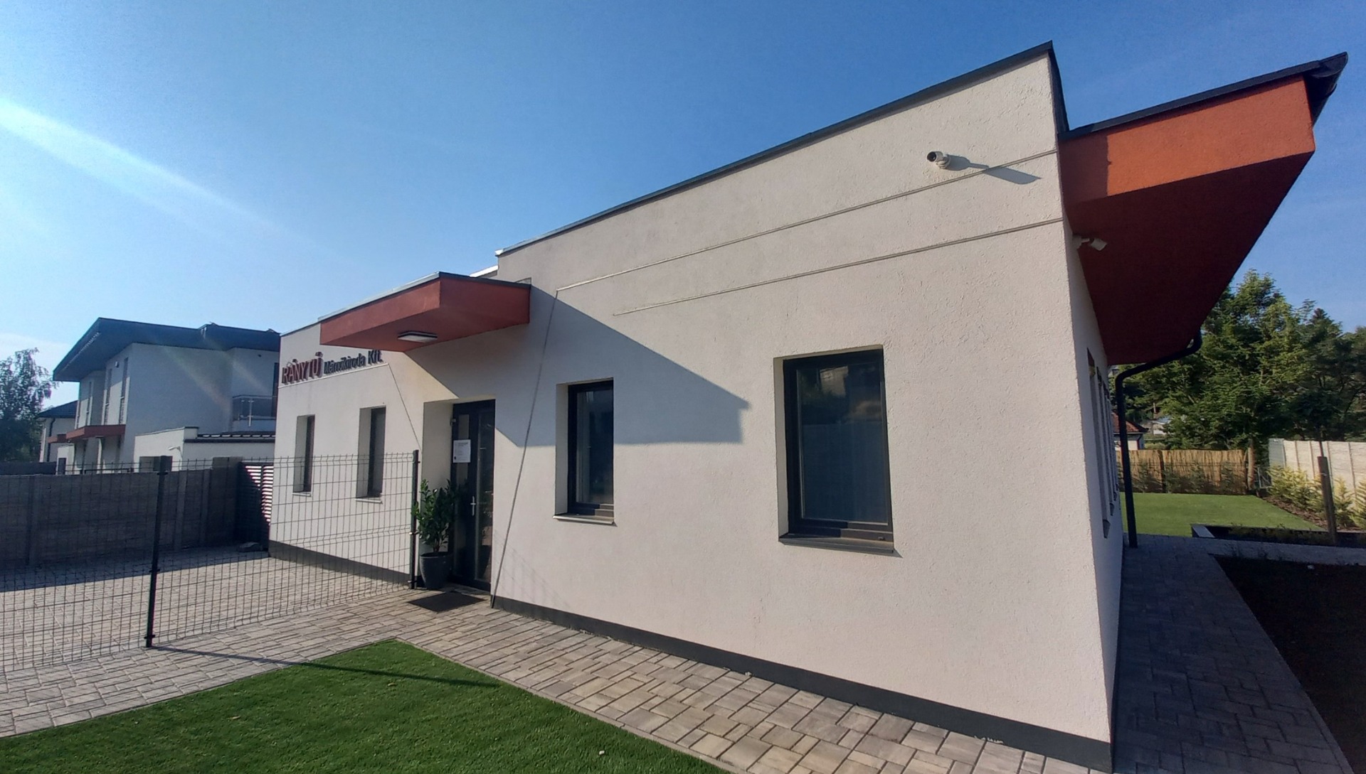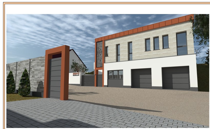 Tervezett iroda épületünk, a Sólyom utcai új telephelyen kerül megvalósításra. Az új építésű, korszerű, földszintes kialakításaú 100 m2-es iroda épületben, elegáns fogadó helyiség, dolgozói tér és azt kiszolgáló helyiségek lesznek kialakítva.
